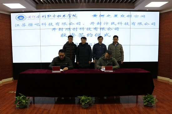 1月19日下午,我校众创空间孵化企业开封顺创科技有限公司与江苏猎吧科技有限公司、开封汴民科技有限公司投资协议签约仪式在我校4号实训馆创客空间举行。开封顺创科技有限公司法人杨鸿基与江苏猎吧科技有限公司市场部经理袁保健分别代表双方签订协议。开封顺创科技有限公司共享电动车项目获江苏猎吧科技有限公司、开封汴民科技有限公司出资的共计200万元的风险投资。