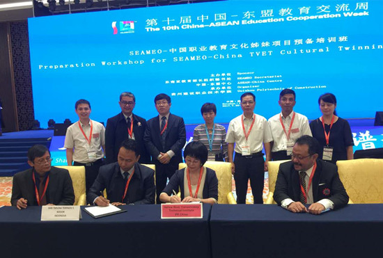 在本届教育交流周上,我校与印度尼西亚、老挝、泰国、菲律宾、柬埔寨、越南等6个国家的13所院校达成合作意向,签订了合作协议,主要涉及教师交流、学生互换、科研合作等项目,进一步拓展了我校国际交流与合作的广度和深度。东南亚教育部长组织秘书长加多特、东南亚教育部长组织职业技术教育区域中心副主任帕尤诺签字见证了合作项目协议的签署。(供图:国际教育学院)