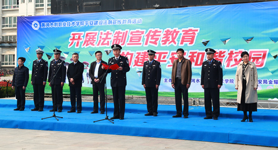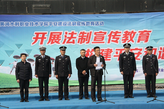 校党委副书记刘卫锋对开封市公安局、金耀分局对我校创建平安校园建设所予以的支持和帮助表示衷心的感谢。他指出,平安校园建设是一项长期而又艰巨的工作,只有起点没有终点。我校将进一步提高认识,狠抓落实,建立健全学校安全长效机制,进一步规范内部管理,加强人防、物防、技防建设,提升现代化管理水平,不断推进“平安校园”建设,为办好人民满意的高等教育做出更大的贡献。他强调,在平安校园创建过程中,要充分发挥学生的主体地位,以开展团日活动、主题班会、文艺活动等形式多样的安全主题教育活动来增强学生的安全防范意识,进一步提高避险处置能力。通过今天的平安建设法制宣传教育活动,全校师生要“做好身边事,影响身边人”,人人在家做“平安家庭”的维护者,在学校做“平安校园”的参与者。