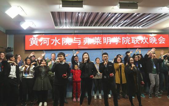 为让来访客人切身感受中国传统文化,10月31日晚上,水利工程学院部分师生、英语夜校骨干教师与弗莱明学院的师生在学校餐厅一同包饺子,共进晚餐。弗莱明学院的师生对包饺子特别感兴趣,我校师生把包饺子的技巧手把手地教给客人。吃着包得千奇百怪的美味饺子,双方师生们欢声笑语、其乐融融。晚餐后,在三号实训馆,学校举办了“展示中国优秀传统文化”主题联欢晚会,向来访客人展现了我校大学生的风采以及丰富多彩的大学生活。活动中,国际工程2014级何晨浩同学还用行书书写了“海内存知己,天涯若比邻”,并将作品赠送给Shawn教授;其他如大学生活介绍、猜词游戏和武术、舞蹈、小品表演等节目进一步增进了双方师生的相互了解,加深了友谊。