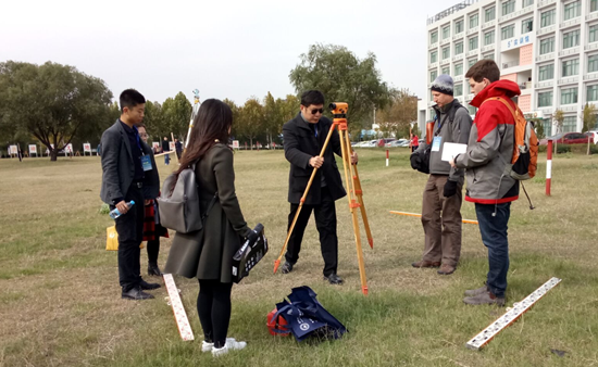 交流中的课堂教学体验活动主要围绕测绘工程学院测绘专业进行。10月31日上午至11月1日上午,测绘工程学院刘云彤、陈旭、孙清娟、孔令惠、陈慧、郭玉珍等老师分别为弗莱明学院GIS专业的10位学生讲授了水准测量知识、全站仪测量和GNSS定位测量的基本原理与使用方法、中西方坐标系的差异及架设基站和使用CORS的区别等,指导他们在实训教室练习,并到实训场手把手教授他们如何架设仪器,如何掌握实践要领。实践中,加拿大学生兴致盎然、热情高涨,扛着GNSS流动站跑来跑去,安置仪器、读数、记录、计算,在课程结束之后回到宿舍还在抓紧时间完成当天的作业。Shawn教授表示,黄河水利职业技术学院测绘工程专业的蓬勃发展,教师授课的一丝不苟,是吸引他不远万里赴我校学习测绘专业知识的原因。