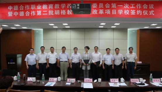 本次会议由中国职业教育创新联盟主办,旨在研究和借鉴德国的职业教育经验,推广胡格教学模式改革项目,研讨中德合作教育教学改革等相关工作。包括我校在内的6所高职院校与中国职业教育创新联盟举行了中德合作第二批胡格教学模式改革项目签约仪式。仪式后,会议代表还参观了中德合作胡格教学模式改革项目的实施情况。