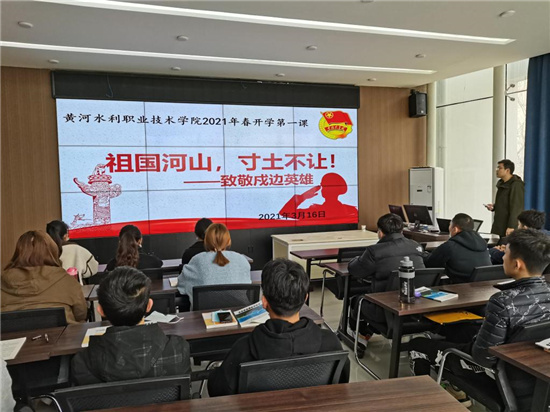 2021 年是中国共产党成立 100 周年,是“十四五”规划开局之年。为进一步乘势而上,顺势而为,做好师生思想政治工作,根据河南省委宣传部、中共河南省委高校工委、河南省教育厅《关于组织全省高校上好 2021 年春季开学思政第一课的通知》精神,在全校范围开展 2021 年春季开学思政第一课工作。在校党委的领导下,根据《黄河水利职业技术学院2021年春季开学第一课实施方案》(黄院宣〔2021〕5 号)文件要求,我校各部门各单位,积极安排部署,精心组织实施,推动活动扎实深入开展,以课程思政为载体全力唱响爱党爱国爱人民爱社会主义的时代主旋律。(供图:各相关部门)