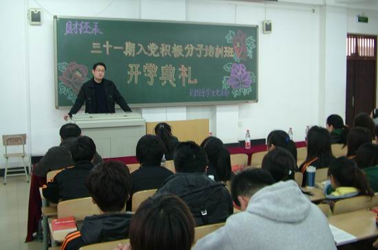 324,财经系第三十一期入党积极分子培训班开学典礼举行。系党总支副书记宋建涛、分团委书记王国英及各级团支部书记出席了本次开学典礼。