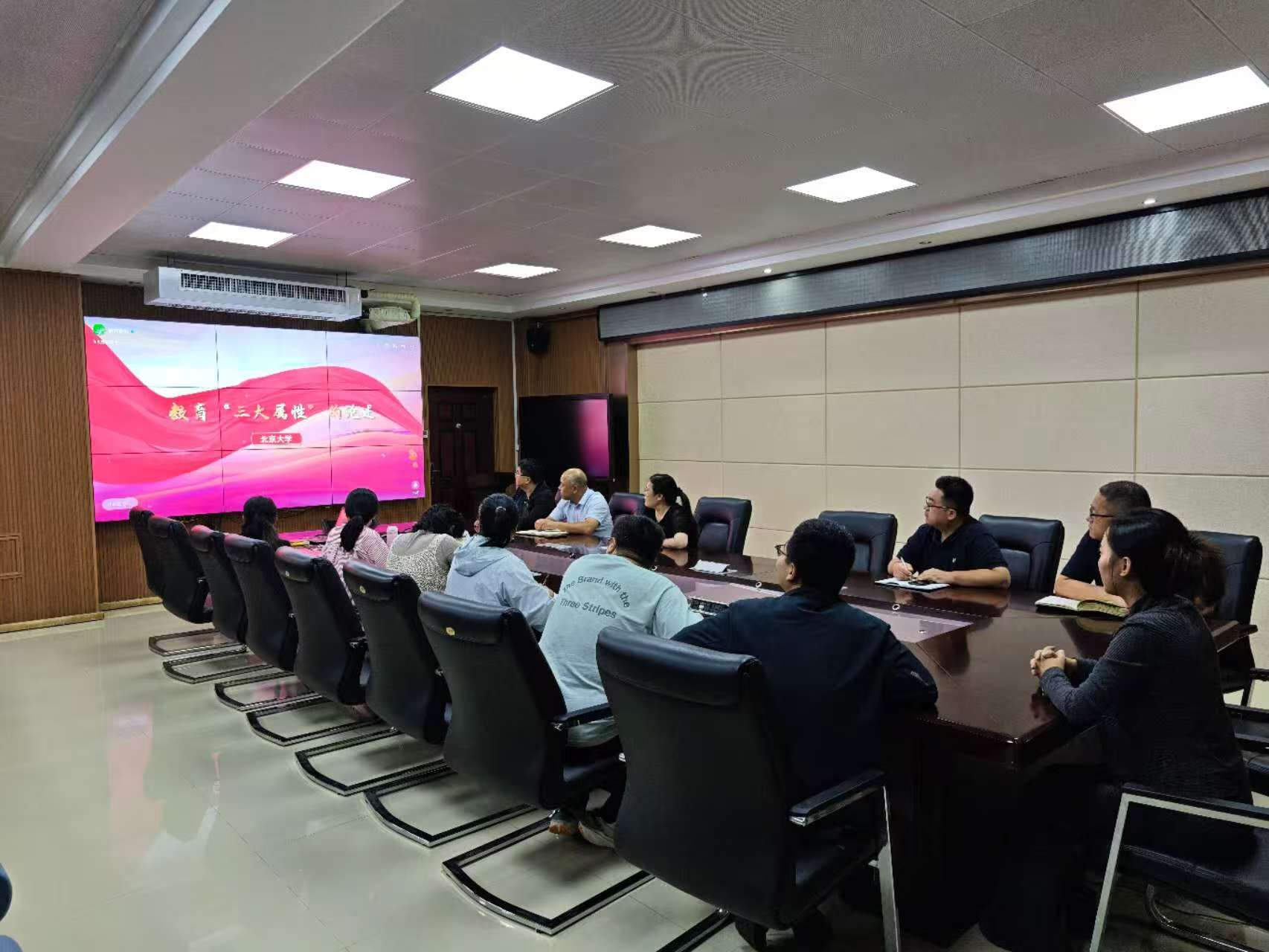 9月12日下午,我校教务处党支部全体党员齐聚一堂,共同收看2025年高校党组织示范微党课(第二阶段)直播。本次微党课以“深刻把握教育三大属性,谱写教育强国时代新篇”为主题,由北京大学、南开大学、陕西师范大学、中国科学技术大学师生党员代表主讲,深入阐释了教育的政治属性(铸魂定向)、人民属性(固本强基)、战略属性(谋篇布局)的深刻内涵及实践要求。