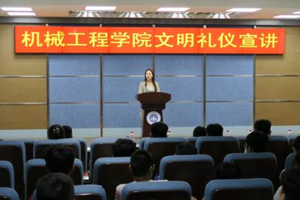 进行此次宣讲活动的同学由机械工程学院分团委精心选拔,前期开展了系统的培训,以保证活动顺利开展。宣讲过程中,学生代表们用朴实的语言,生动的例子,为我们讲述了文明礼仪的重要性,进一步普及文明礼仪知识,规范文明礼仪行为,塑造机械学子讲文明、守礼仪、重诚信、团结友善、爱岗敬业、亲和融洽的良好形象。
