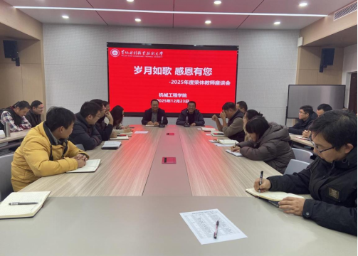 为传承尊师重教之风,致敬奉献育人生涯的荣休教师,12月30日下午,机械工程学院于SY5211会议室为谷礼新、张俊海两位老师举办了一场庄重而温馨的“岁月如歌,感恩有您”2025年度教师荣休仪式。学院全体教职工共同到场,见证这一充满敬意与温情的时刻。仪式由学院党总支书记杨彦涛主持。
