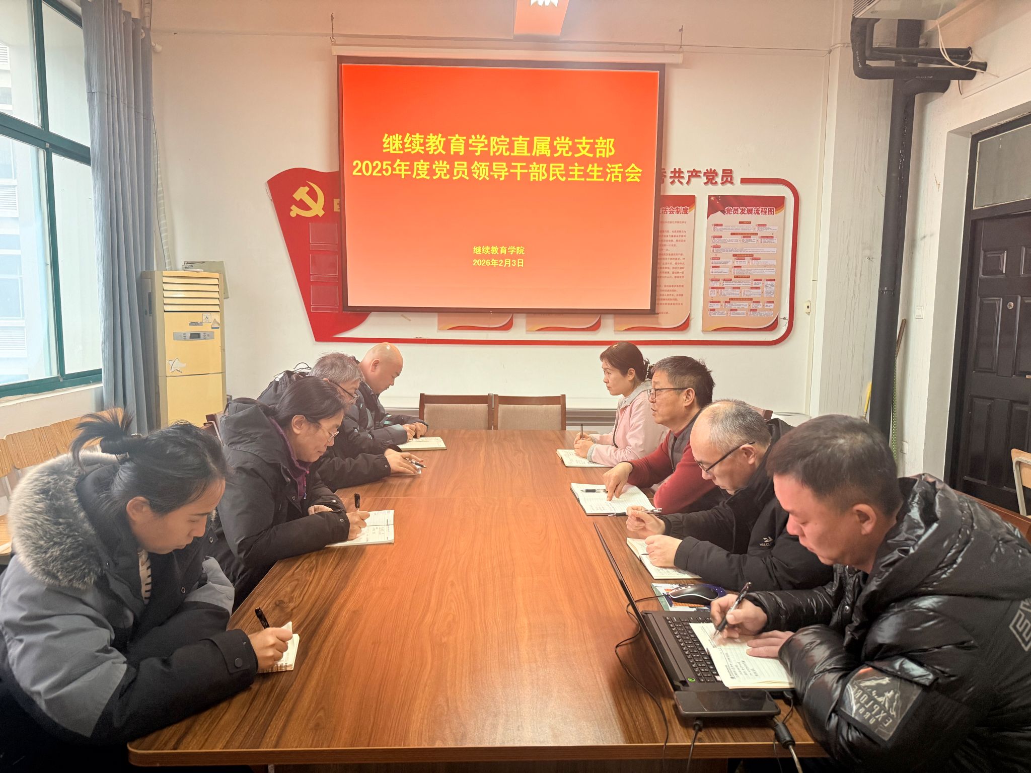 2026年2月3日下午,继续教育学院直属党支部召开了2025年度党员领导干部民主生活会,会议由党支部书记薛建荣主持,全体党员参加。