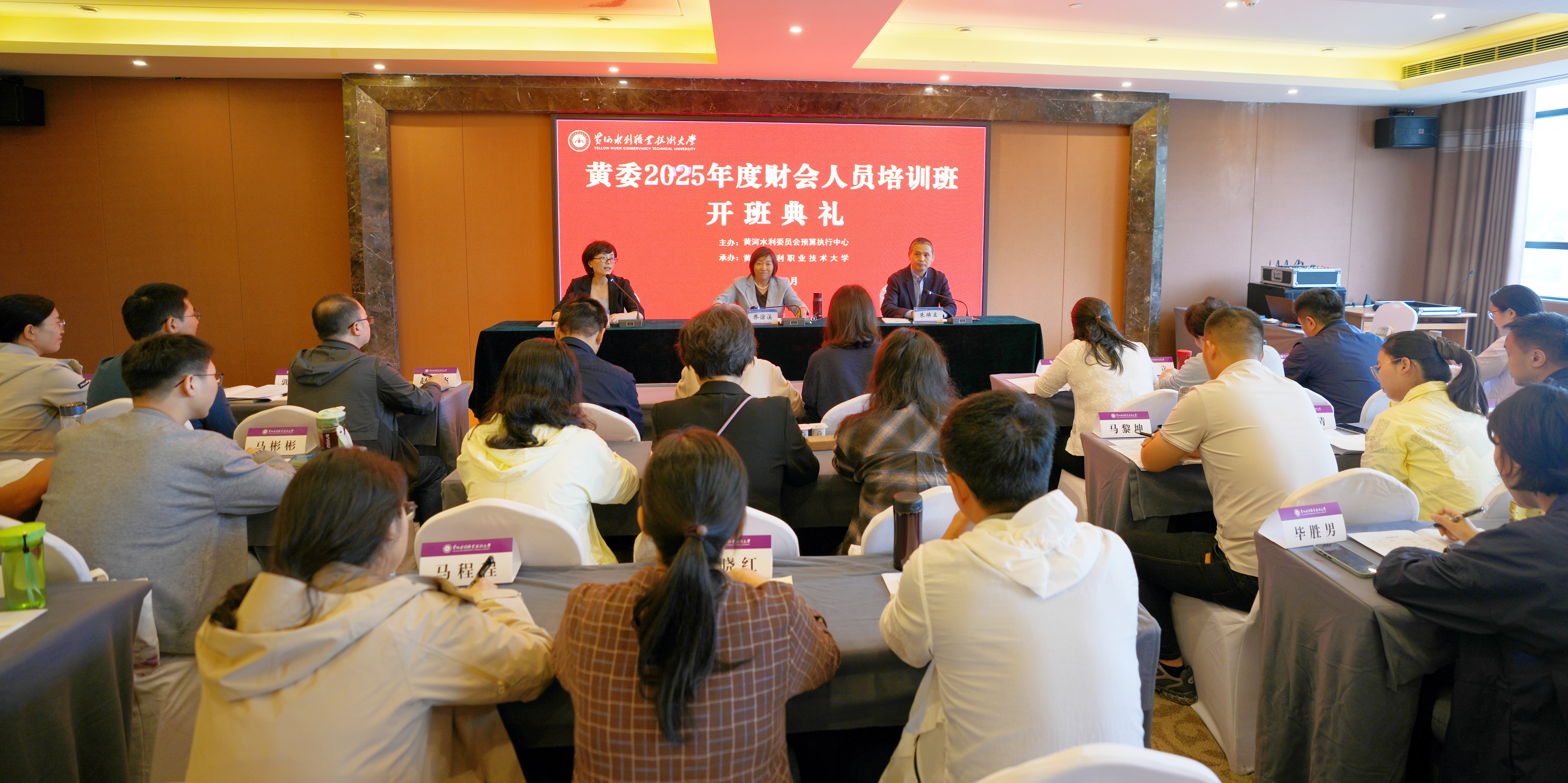由黄河水利委员会预算执行中心主办、我校承办的两期黄委2025年度财会人员培训班分别于9月15日和18日顺利开班。黄委会财务局二级巡视员乔淙溪,我校党委书记周保平、副校长朱焕立分别出席开班式。委属各财务单位200余人分两期参加了培训。
