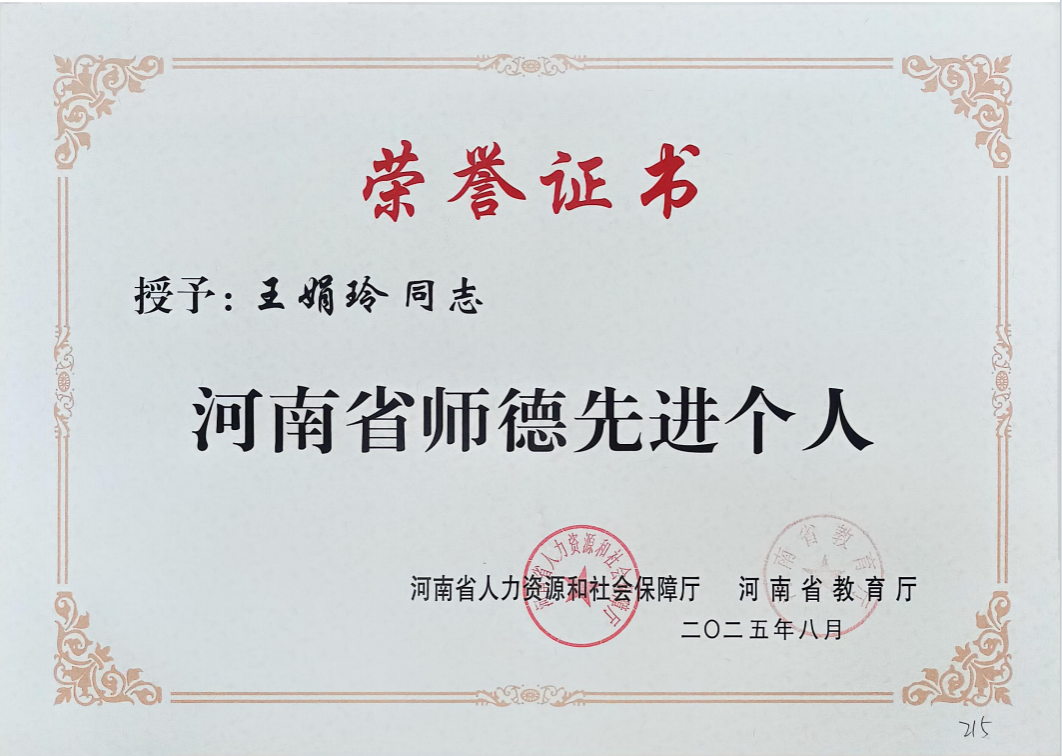 在河南职业教育这片沃土上,有一位师者,以近三十年的执着坚守,诠释着“学高为师,身正为范”的深刻内涵;有一位党员,以党建引领业务发展,践行着为党育人、为国育才的初心使命;有一位带头人,以卓越的业绩和无私的奉献,带领团队攀登一个又一个高峰。她,就是我校土木与交通工程学院教师王娟玲——2025年“河南省师德先进个人”荣誉称号获得者。
